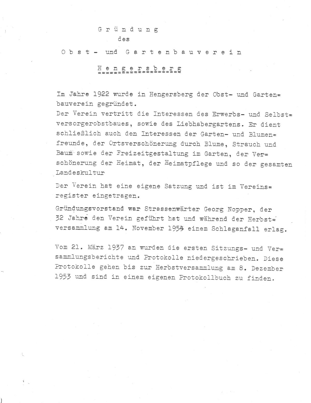 1922 Gründung des Obstbauvereins Hengersberg mit Vorstand Georg Nopper, der 32 Jahre den Verein führte Aufzeichnung